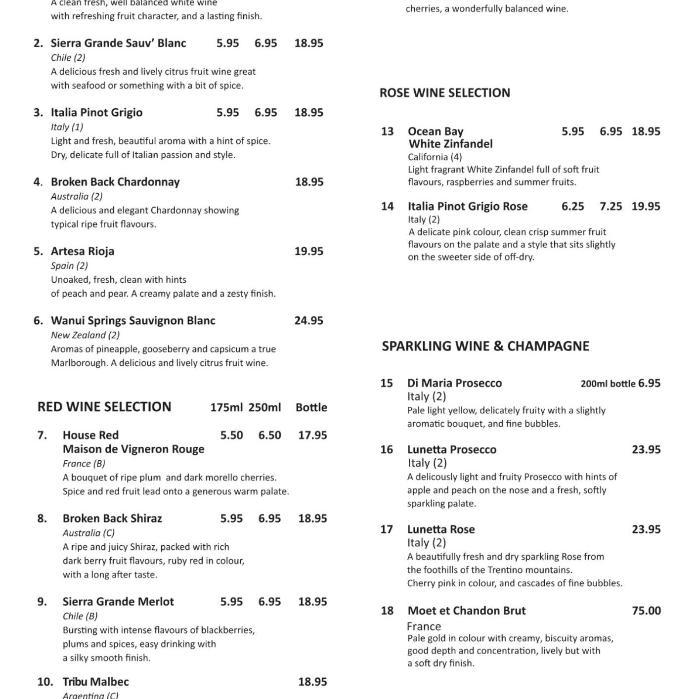 WINE & DRINKS MENU